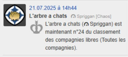 Lovely and welcoming small Free Company in Spriggan Chaos.Founded on 11.04.2024 we've never stopped being active !Casual and high end, crafting and fighting, we do it all.
